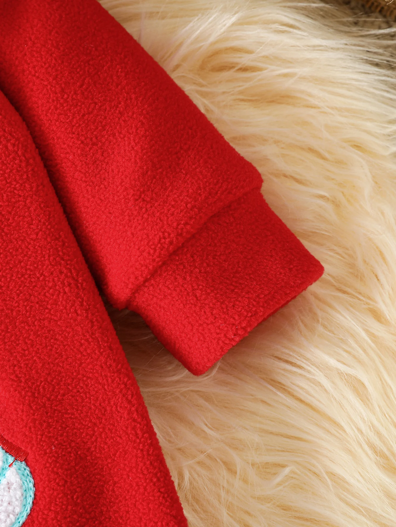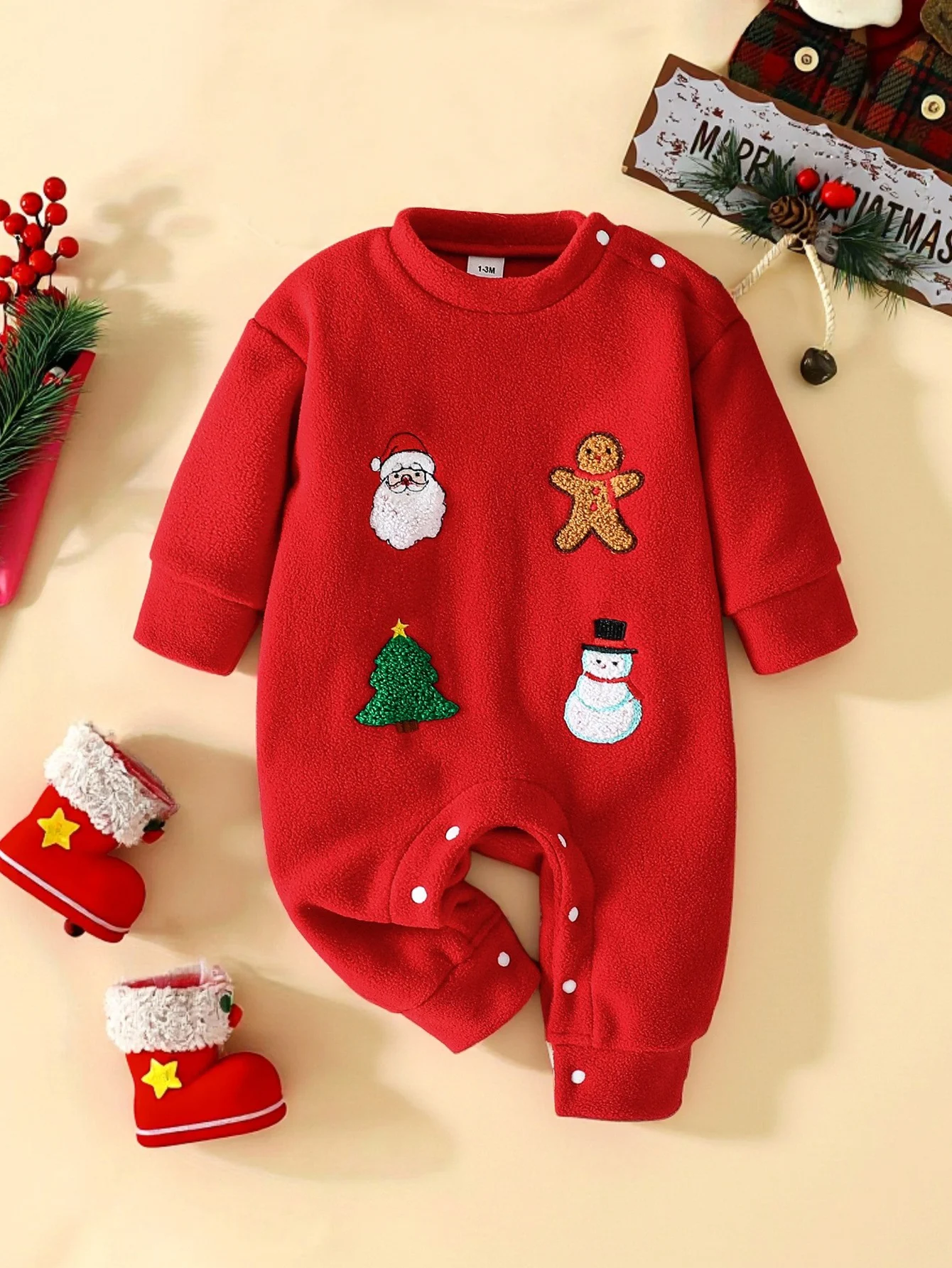 Christmas Baby Romper – Warm Fleece Santa and Snowman Jumpsuit for Kids – Cute Winter Outfit with Tree and Gingerbread Embroidery – Unisex Toddler Clothes