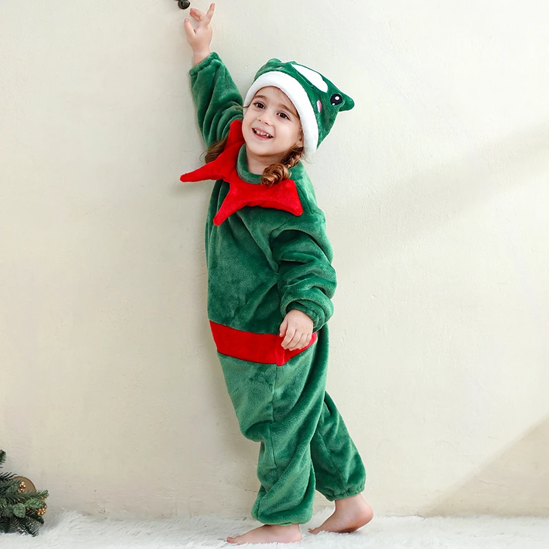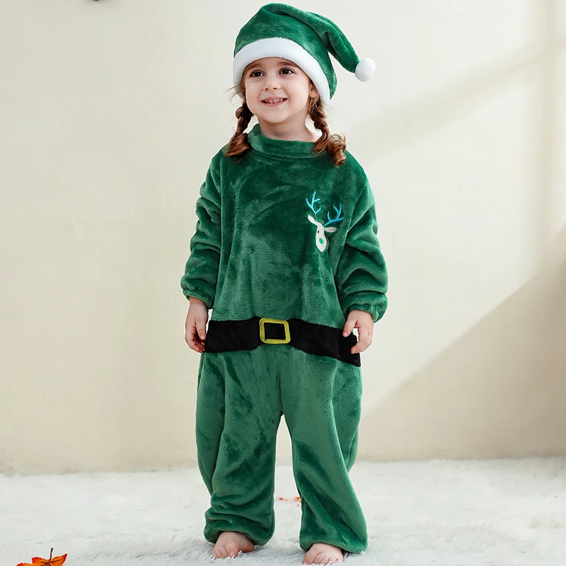 Christmas Elf Baby Romper – Soft Flannel Winter Costume Jumpsuit for Kids – Warm Hooded Outfit for Boys and Girls – Cute Holiday Pajamas and Cosplay Bodysuit