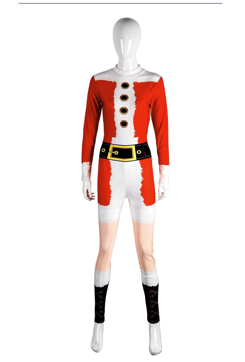 Christmas Onesie Dress - Red Digital Print Outfit - Holiday Performance Clothing - Party Costume with Stockings