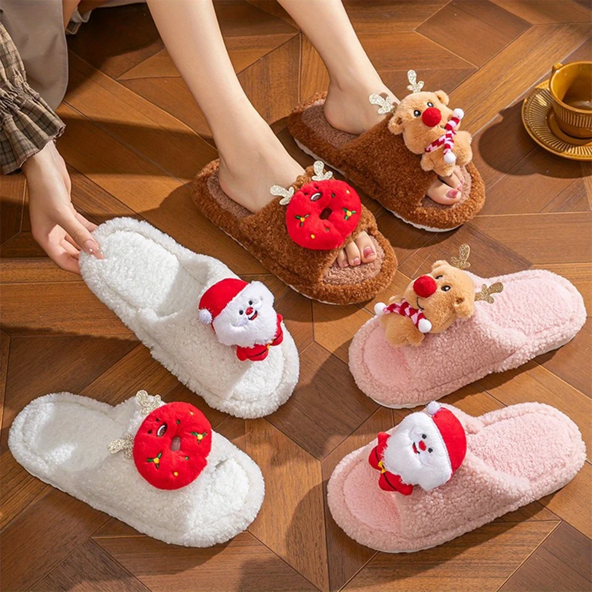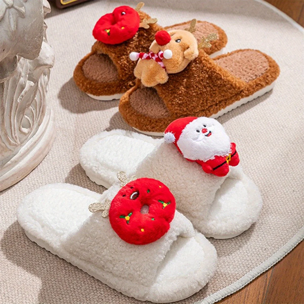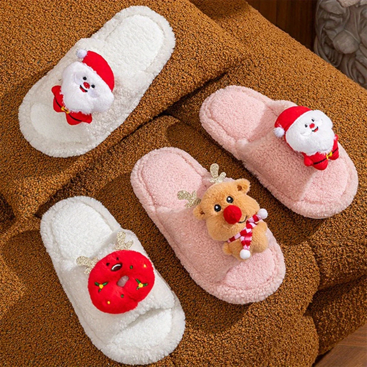 Christmas Slippers Women – 3D Snowman & Reindeer Plush Shoes – Warm Indoor Outdoor Winter Footwear – Anti-Slip Holiday House Shoes