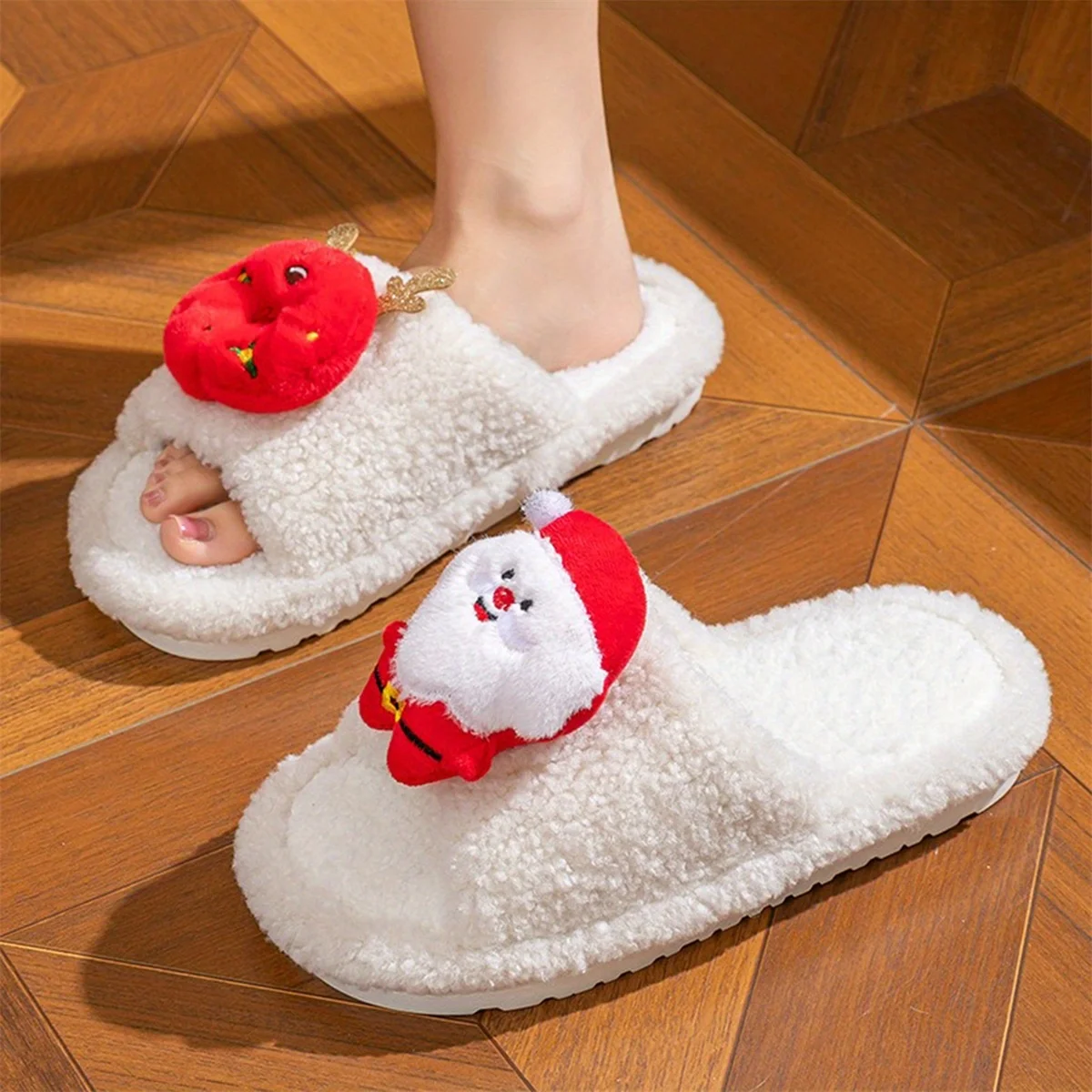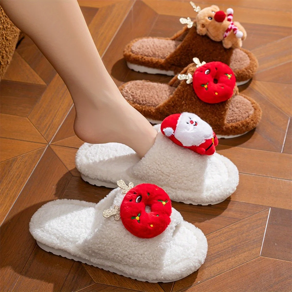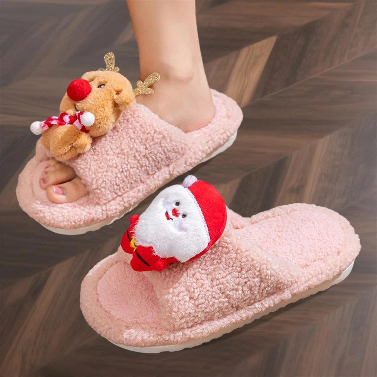 Christmas Slippers Women – 3D Snowman & Reindeer Plush Shoes – Warm Indoor Outdoor Winter Footwear – Anti-Slip Holiday House Shoes