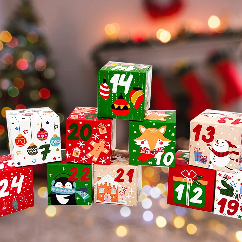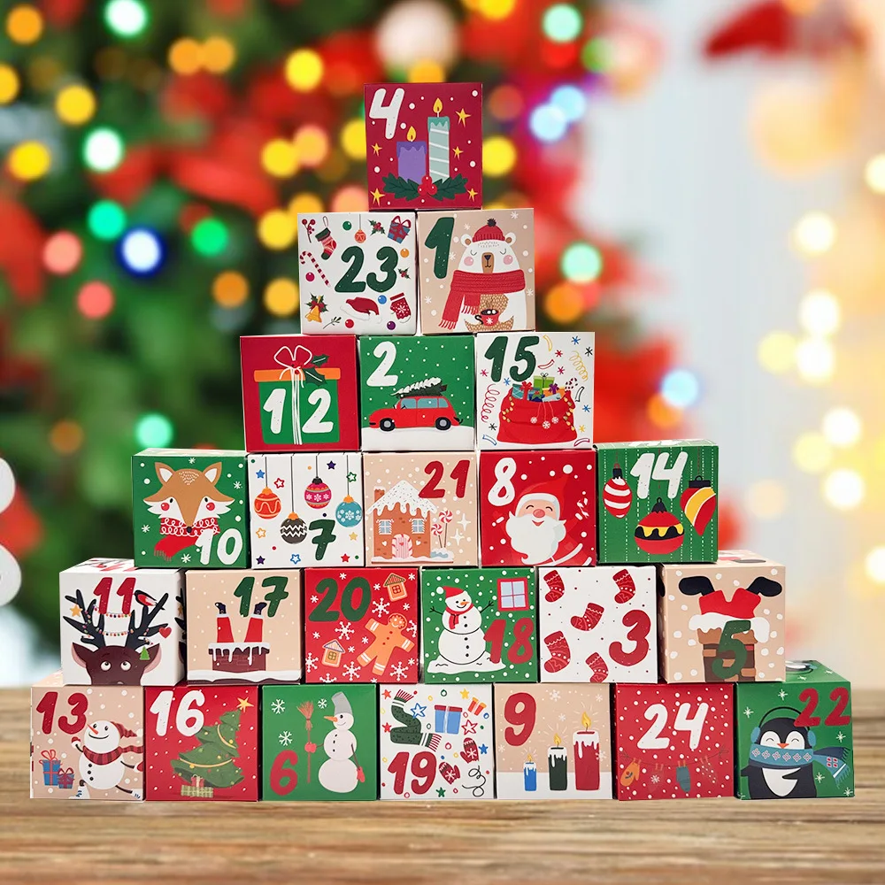 DIY Christmas Countdown Advent Calendar 2025 - 24 Days with 24pcs Christmas Cardboard Treasure Boxes Make And Fill Your Own Holiday Fun