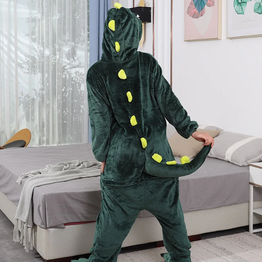 Green Dinosaur Onesie Costume - Fluffy Hooded Kigurumi for Adults and Kids - Soft Fleece Animal Jumpsuit - Fun Cosplay Outfit for Halloween or Christmas Party
