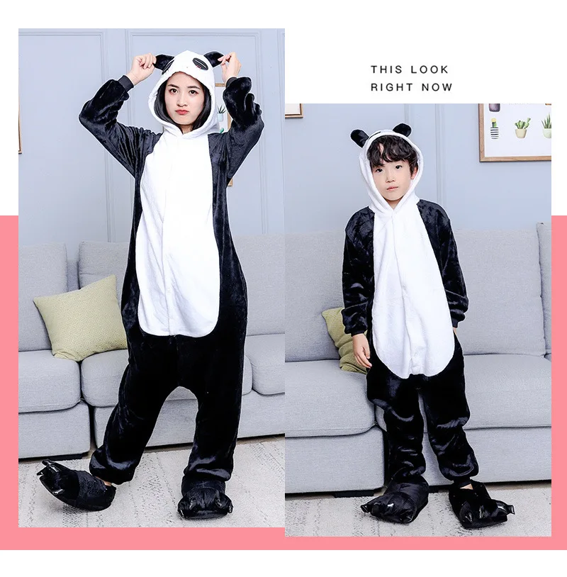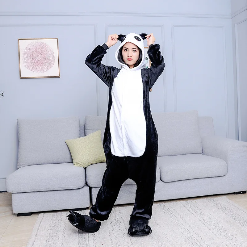 Panda Onesie Costume - Soft Fleece Animal Kigurumi for Adults - Unisex Hooded Jumpsuit - Cozy Loungewear Sleepwear for Home, Halloween or Christmas Party