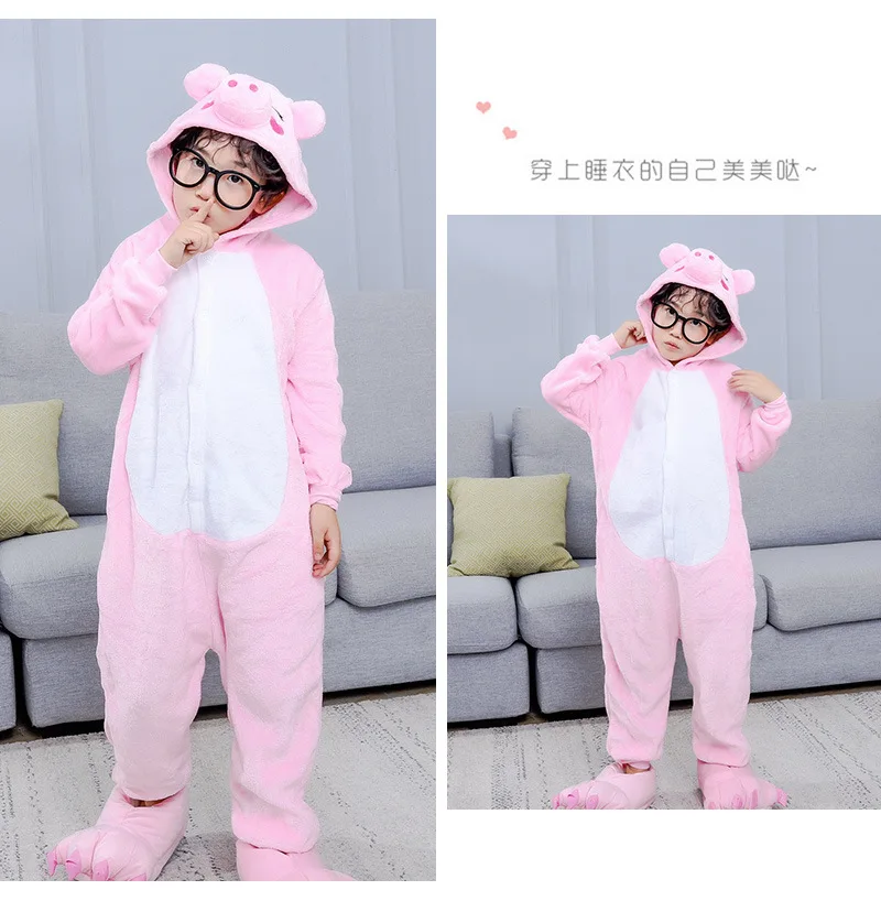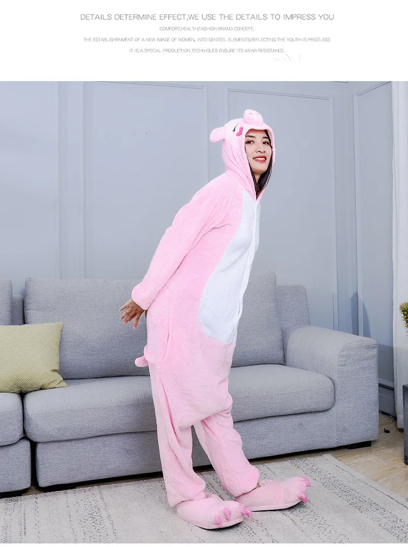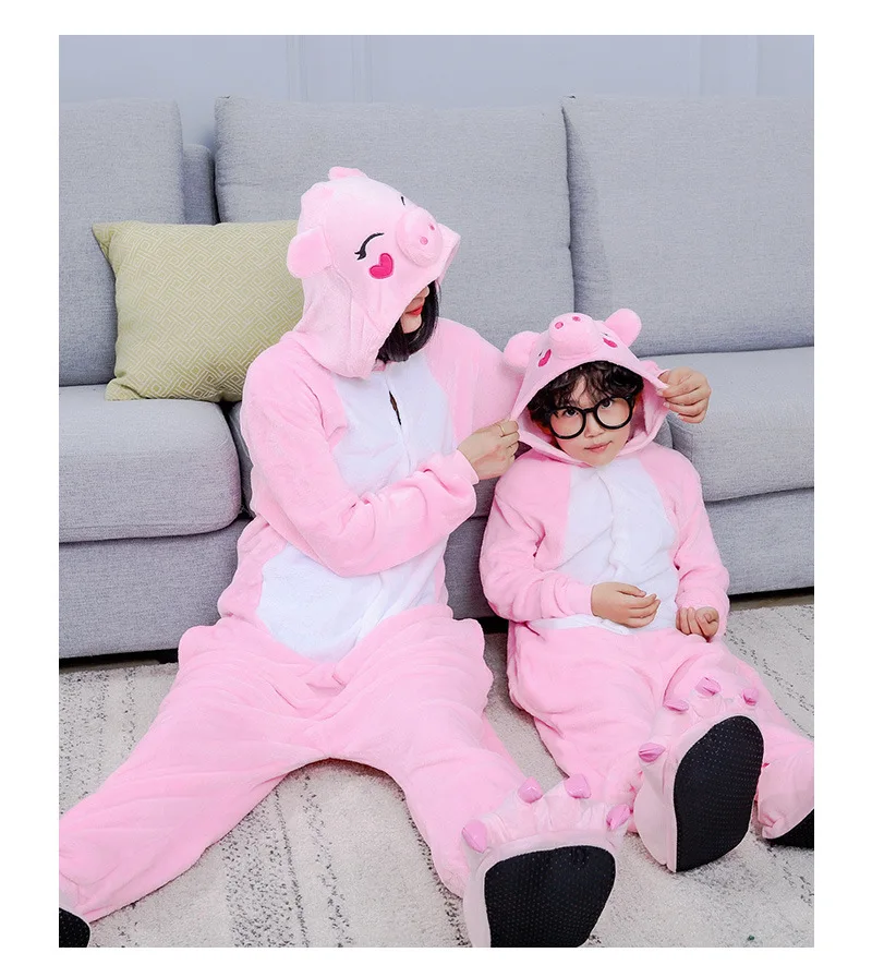 Pink Pig Onesie Costume - Soft Fleece Animal Kigurumi for Adults and Kids - Cute Hooded Jumpsuit - Cozy Loungewear Sleepwear for Home, Halloween or Christmas Party