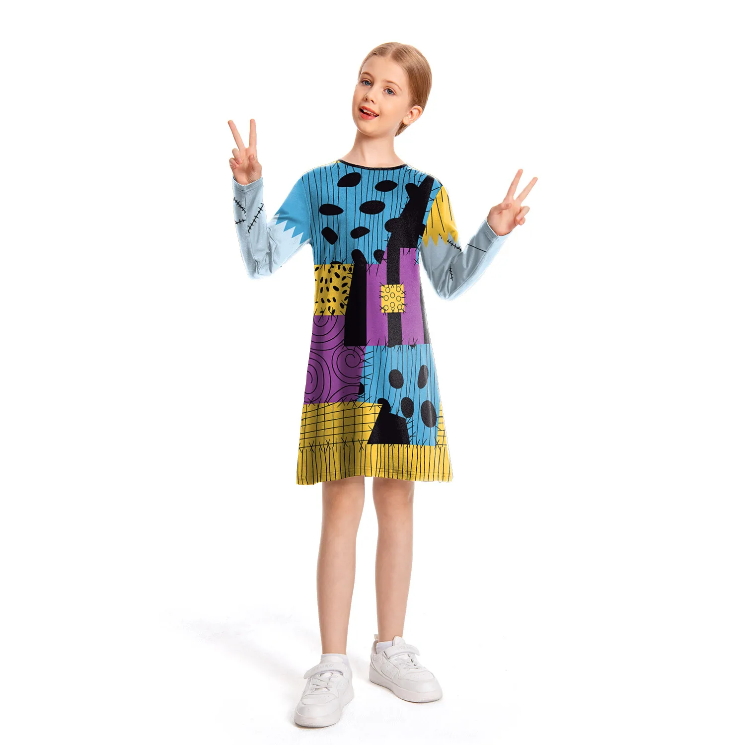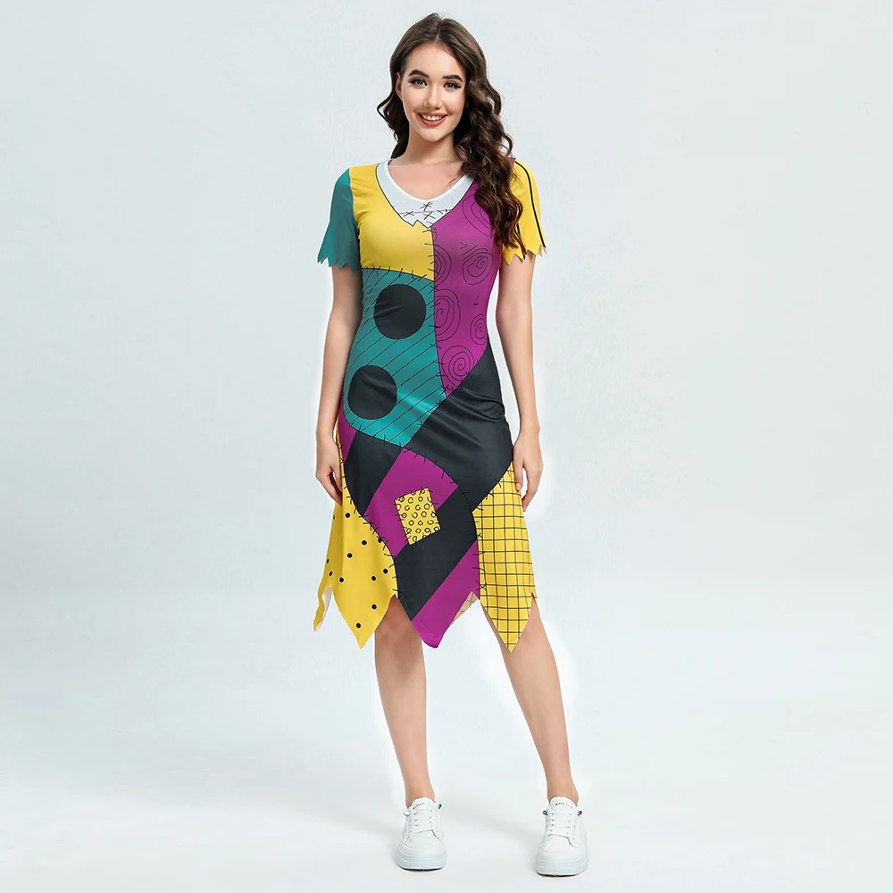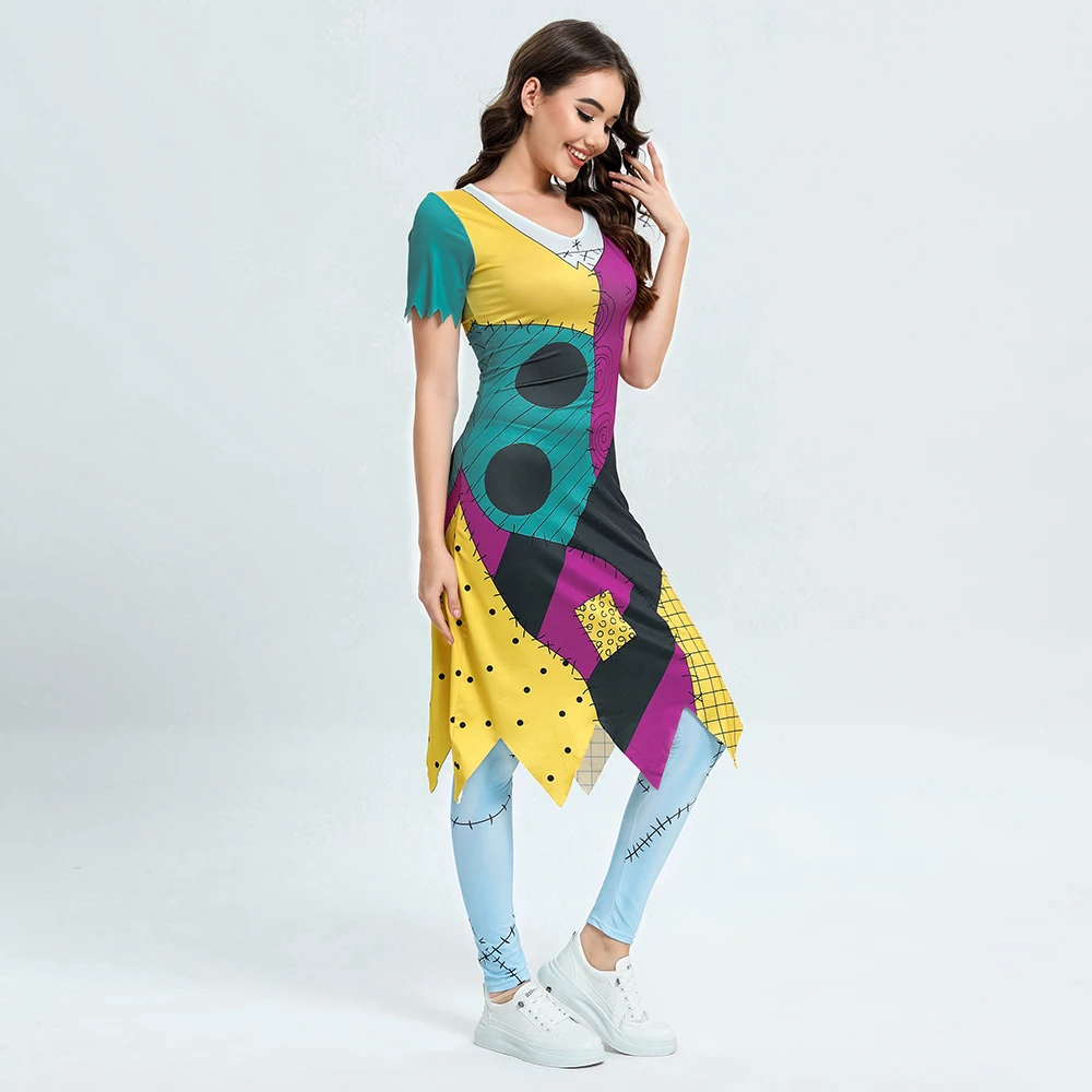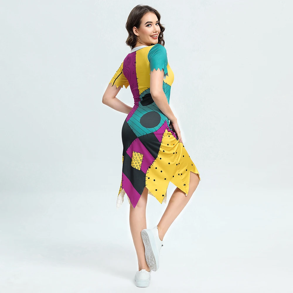 Sally Greeter|High-Quality Material: Crafted from premium materials, this Sally Halloween Cosplay Dress ensures durability and comfort for all-night festivities.