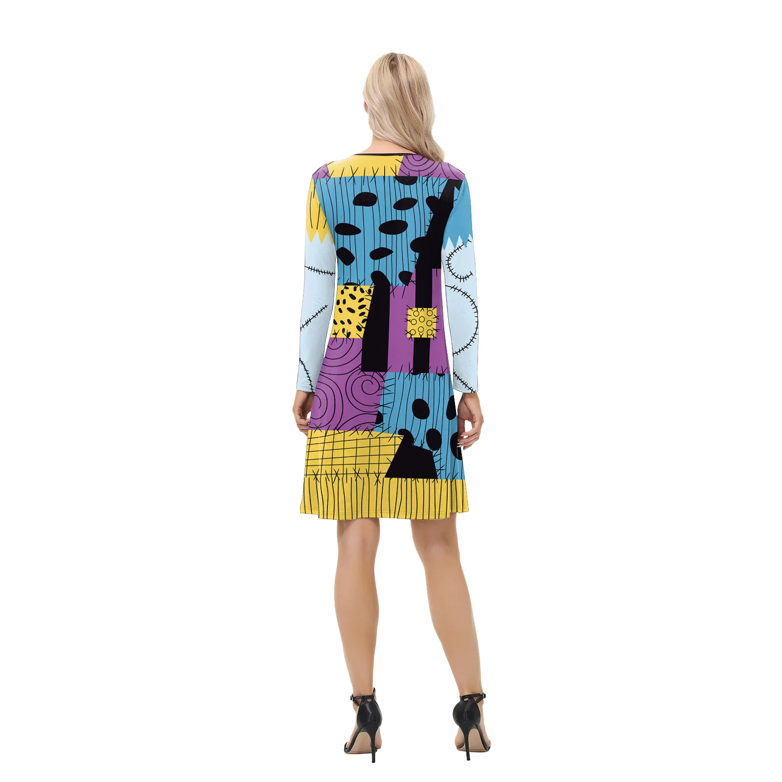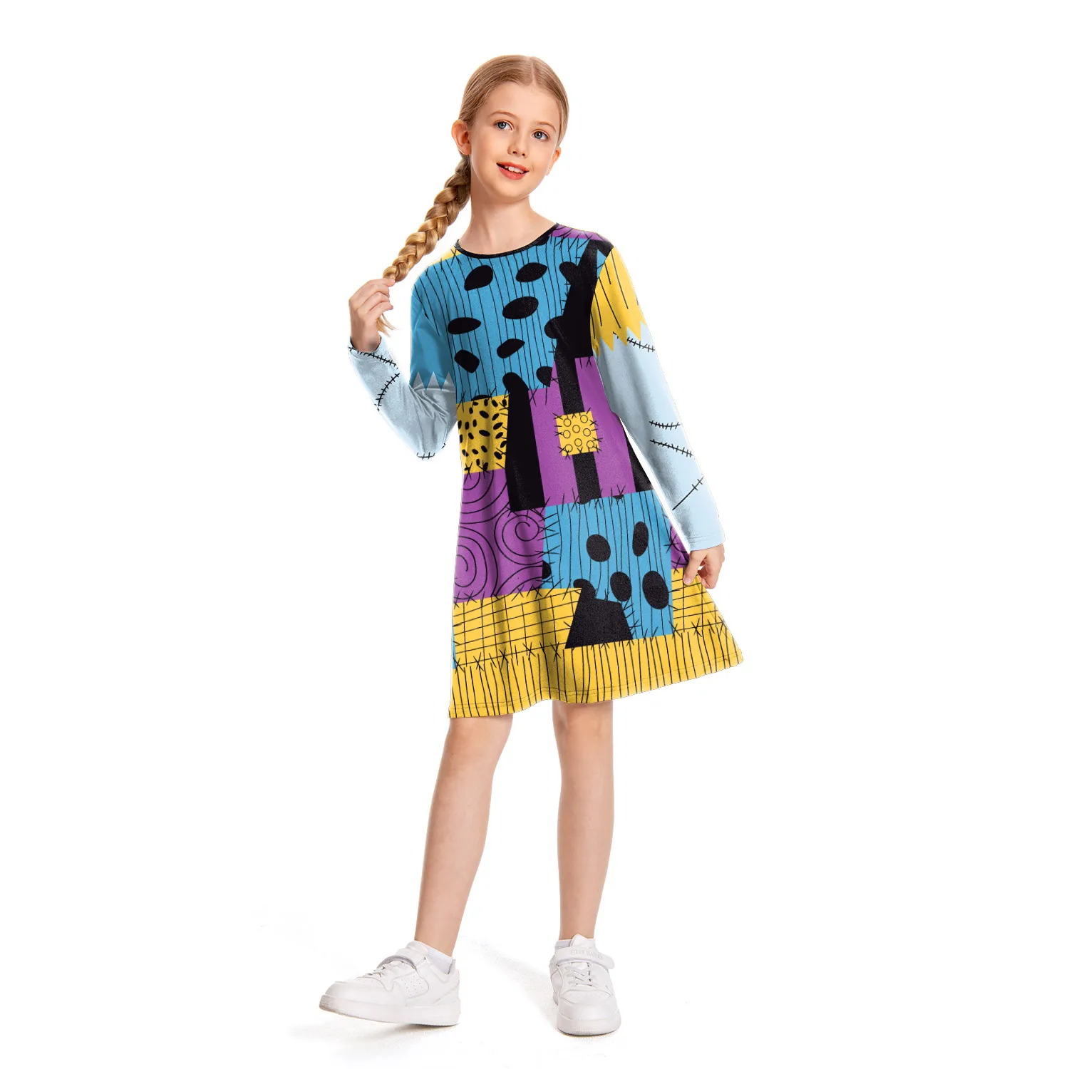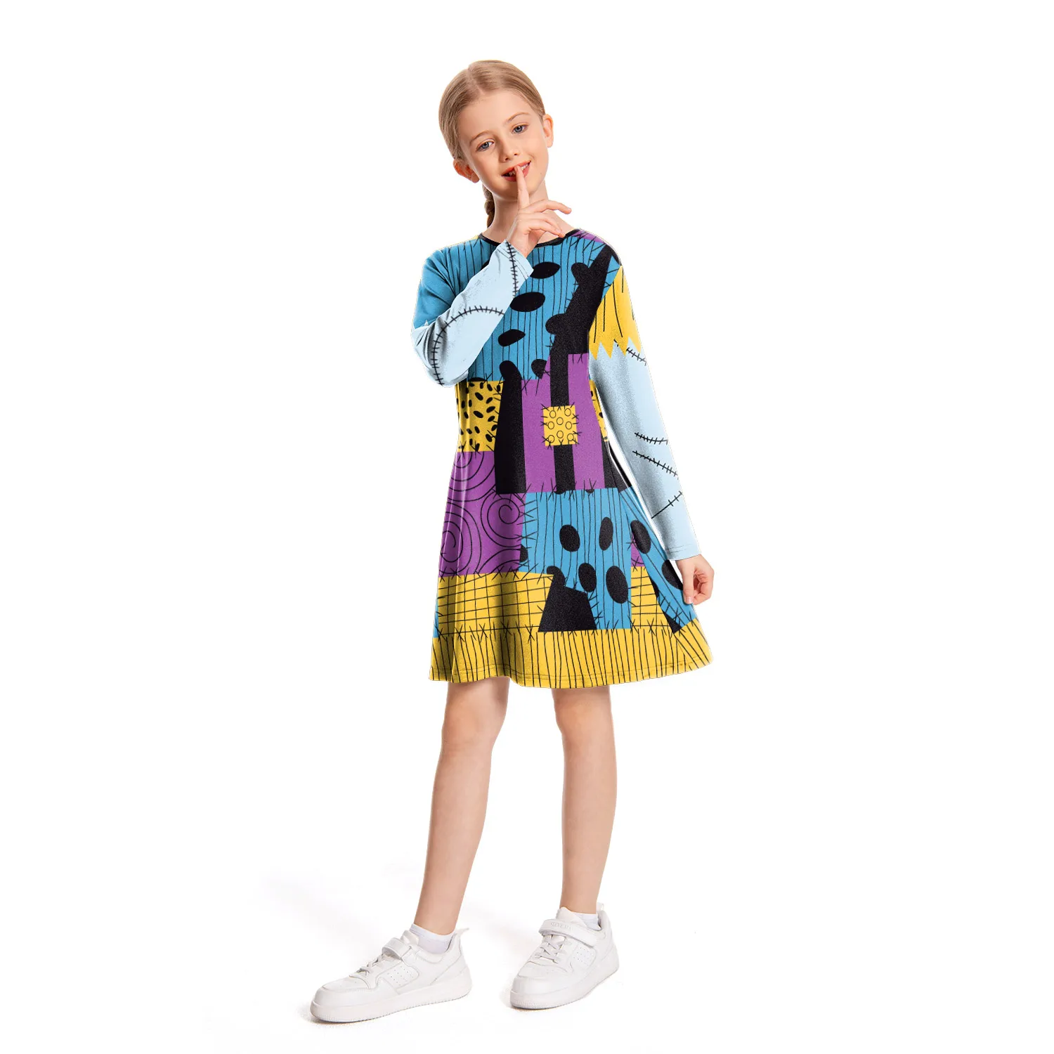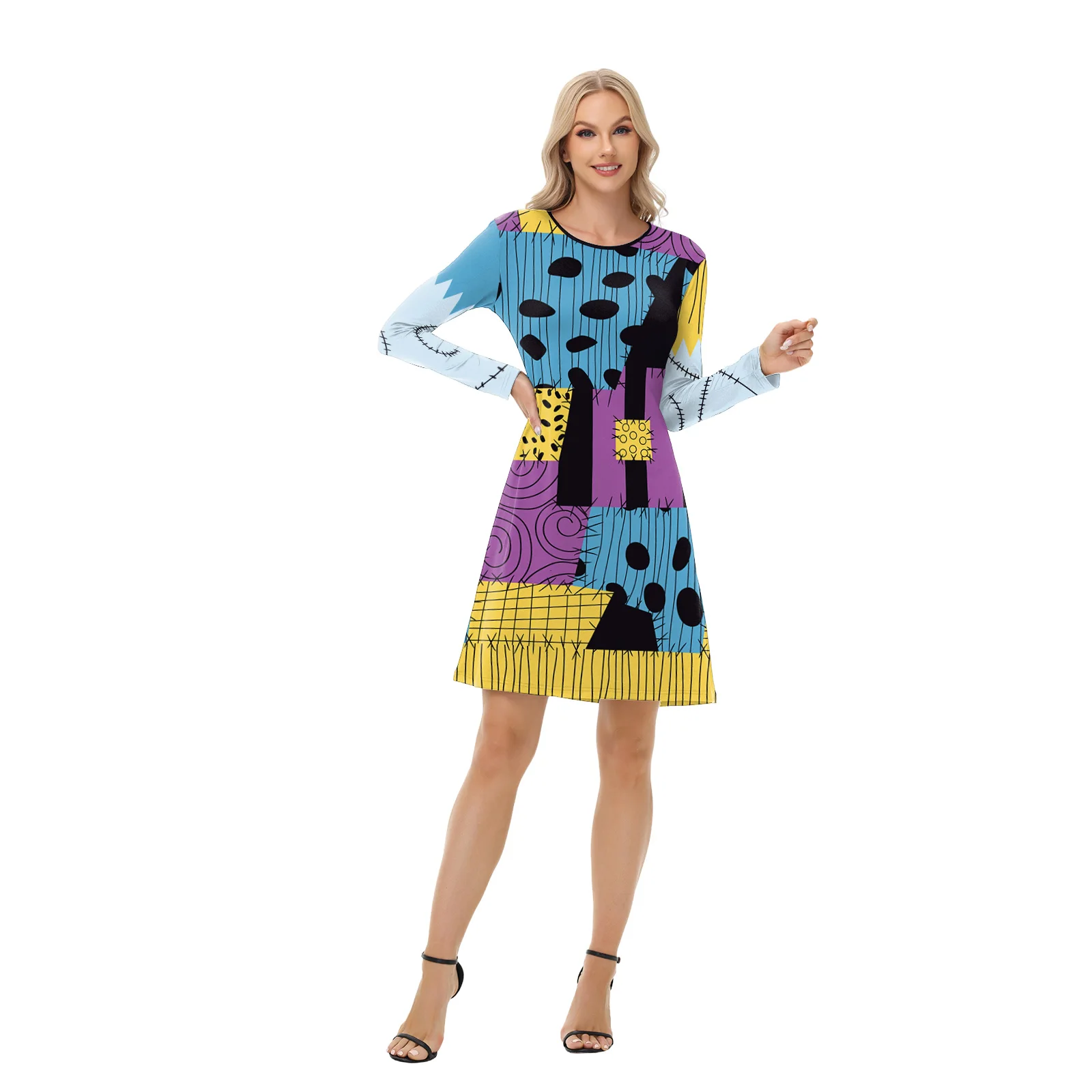 Sally Greeter|High-Quality Material: Crafted from premium materials, this Sally Halloween Cosplay Dress ensures durability and comfort for all-night festivities.