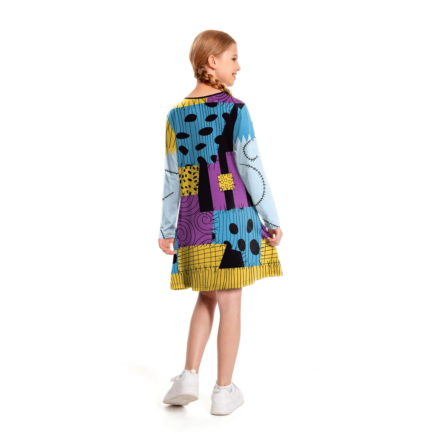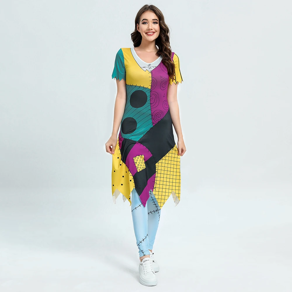 Sally Costume Dress – Nightmare Before Christmas Cosplay – Anime Style Fancy Party Outfit – Christmas Carnival Matching Bodysuit Set